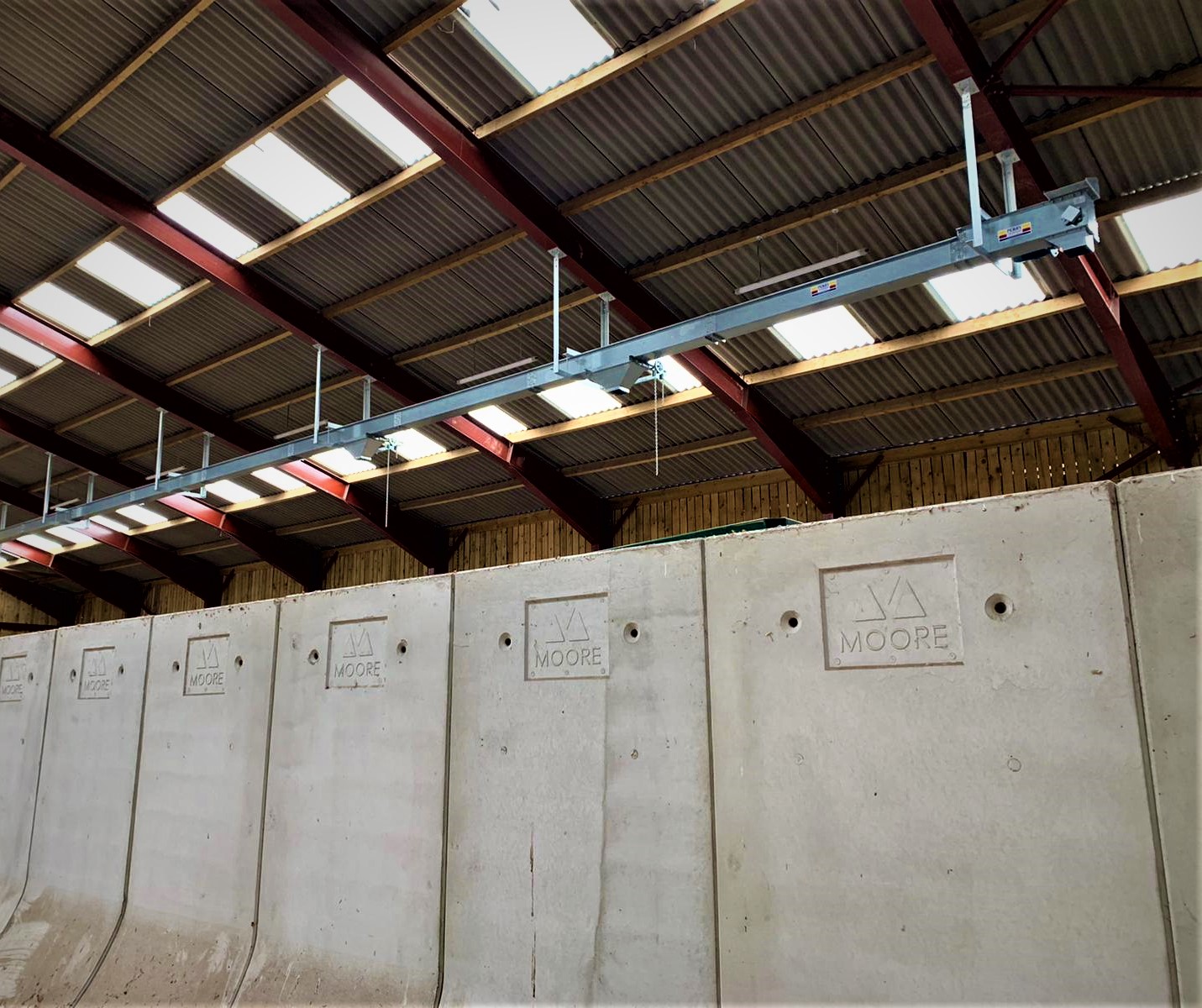 The length of each Bunker Wall unit is 1.2m and they are available in heights 1.5m, 2.4m, 3.0m, 3.6m, 4.0m and 4.3m. The weight of the walls ranges from 1.2 tonnes to 3.6 tonnes, so consideration of telehandler capacity needs to be taken when selecting height. While the weight of each unit increases delivery costs, it is this weight that prevents the grain walls moving or overturning once in use in the grain in store. This weight gives the Moore Concrete Bunker wall the outstanding stability that sets the product apart from others on the market.