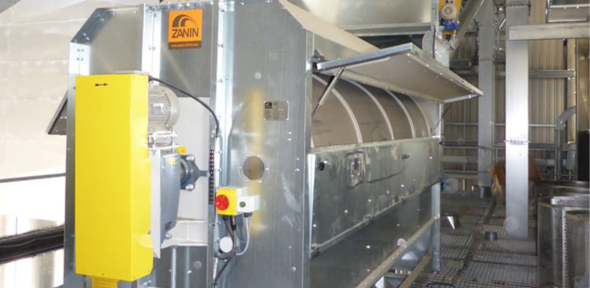 Italian manufacturer Zanin was founded in 1956 and is know for the manufacture of grain drying and cleaning equipment. The PPR rotary drum pre-cleaner is fed by gravity into the first of a series of drums. Typically fine particles are removed in the first drum and the subsequent drums allow clean product to pass through, with large impurities staying in the drum and being removed at the end outlet.